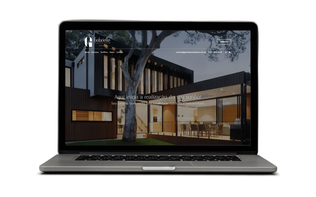 Criação de site institucional com foco em projetos arquitetônicos de alto padrão, apresentando o portfólio com imagens em tela cheia e navegação fluida. Gestão de campanhas no Google Ads voltadas para reformas e projetos residenciais.