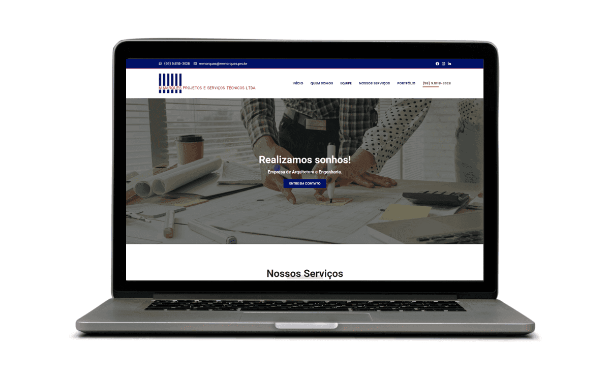 Site híbrido para apresentar os serviços técnicos de engenharia e os projetos arquitetônicos com clareza. Landing pages específicas para cada público-alvo e campanhas no Google Ads voltadas para obras e reformas corporativas.